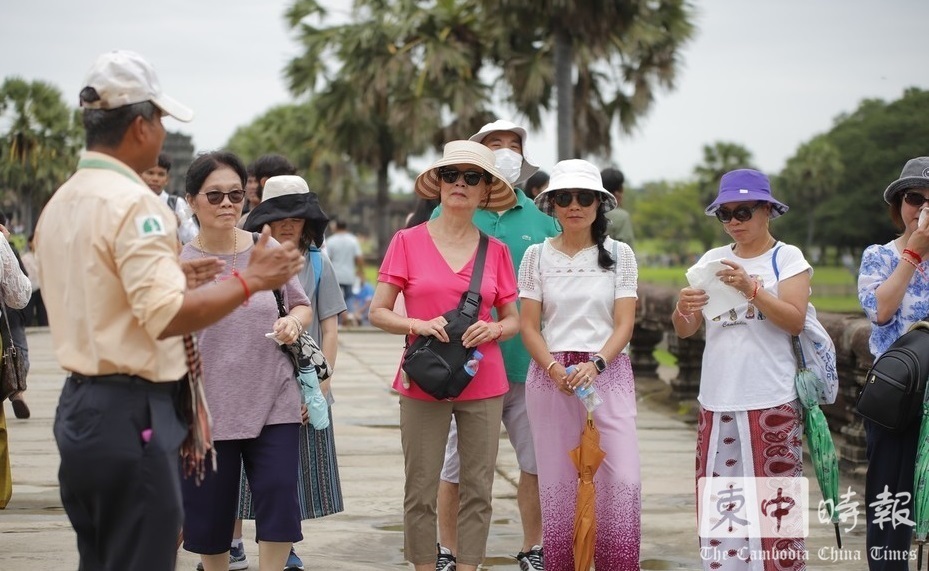 暹粒吴哥景区内,中国游客在导游带领下参观游览。(图:柬中时报资料图)