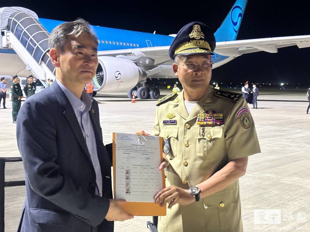柬埔寨移民总局代表向韩方移交遣返人员资料。(图:柬中时报)