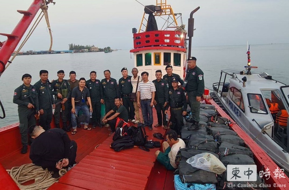 警方在西哈努克省海域拦截涉案船只。(图:柬中时报资料图)
