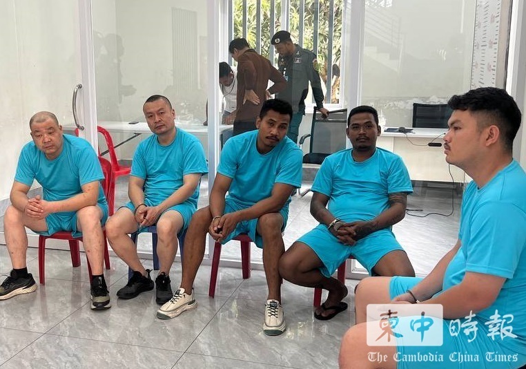 涉殴打并强迫按手印的5名嫌疑人被警方控制,案件已移送法院处理。(图:柬中时报)