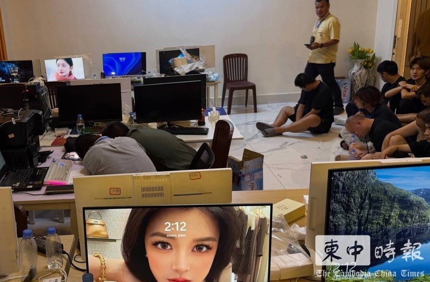 柬埔寨警方昨日在金边捣毁一处跨国网恋诈骗窝点。(图:柬中时报)