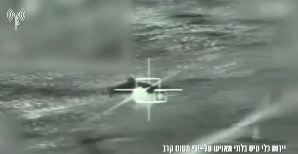 △当地时间28日晚,以色列国防军公布一段画面,显示当天早些时候拦截一架射向以色列的伊朗无人机。