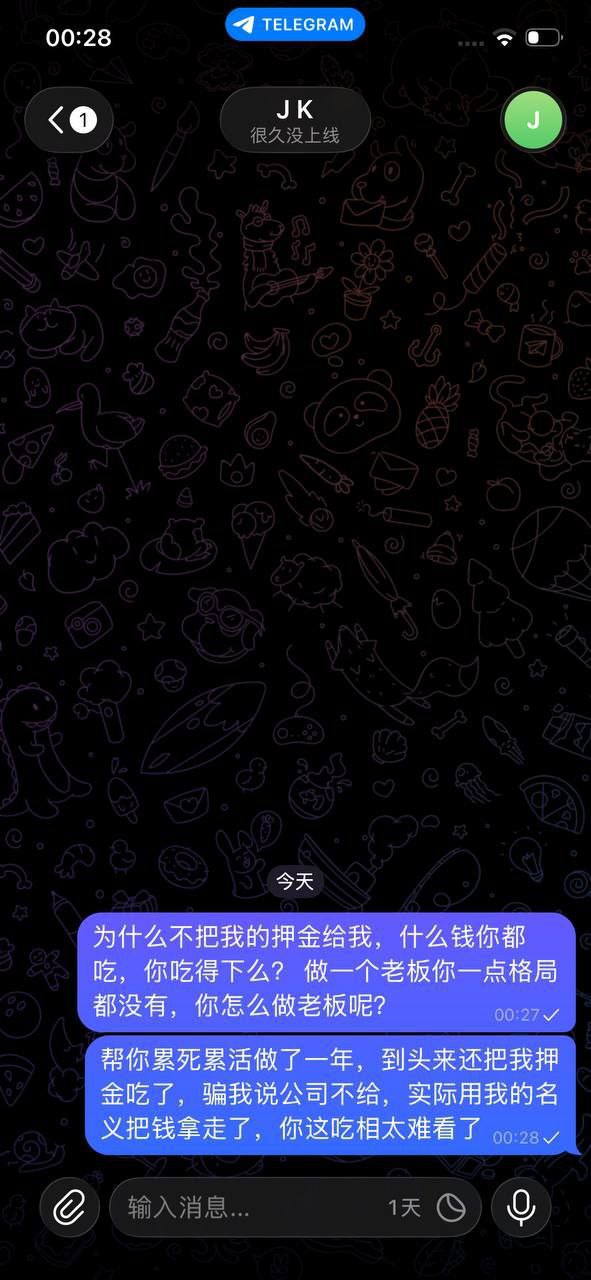 你每天画各种大饼,说未来如何发展,可现实却是管理层长期对员工施压,动不动罚款,制度反复变化,压力全都由我们承担,憑良心講,該做的我都做了,該承擔的我也承擔了,你還以我的名義把我的押金冒領去用了,问老板江浩然你拿钱還反咬一口,吃相真的不要太難看了。