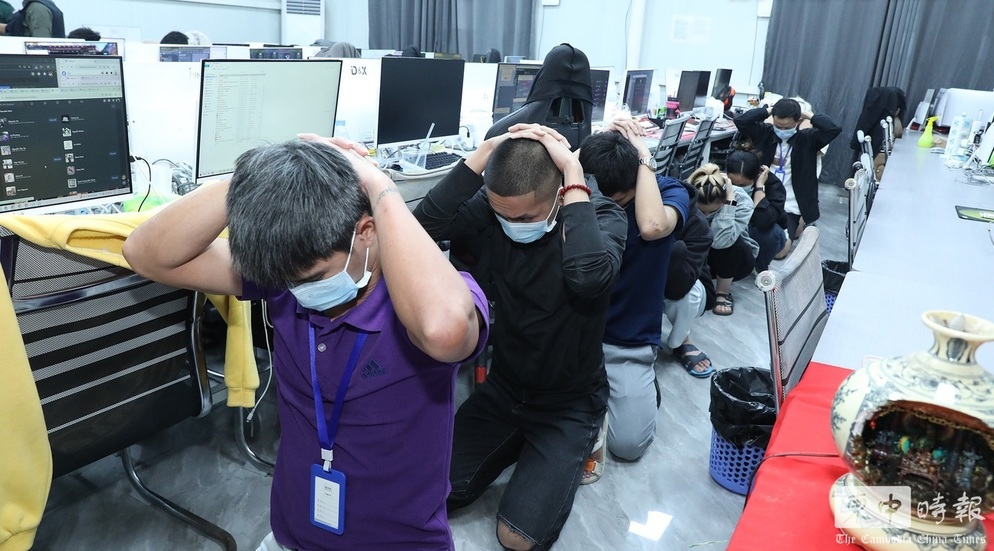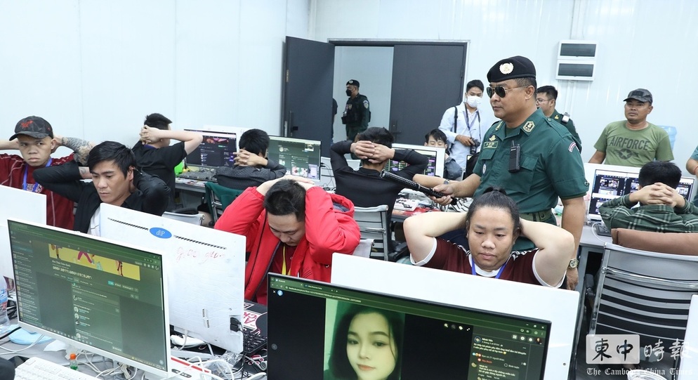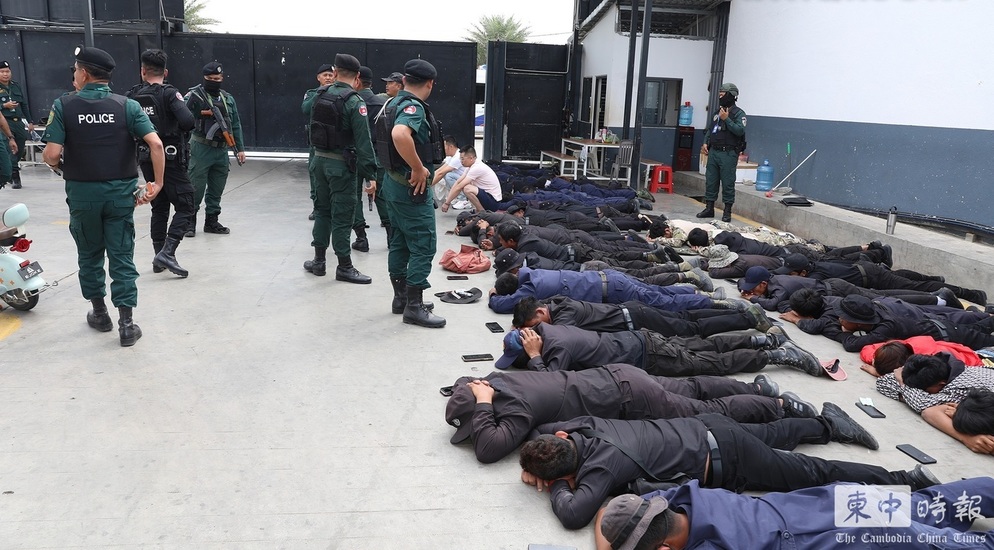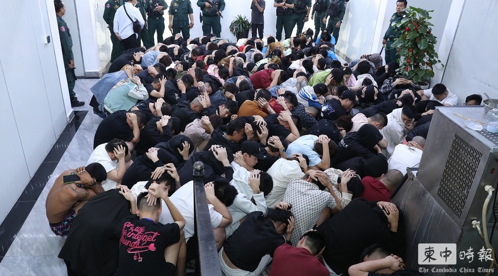 卜迭棉芷省一电诈园区被捣毁,抓获大批涉案外国人。(图:柬中时报)