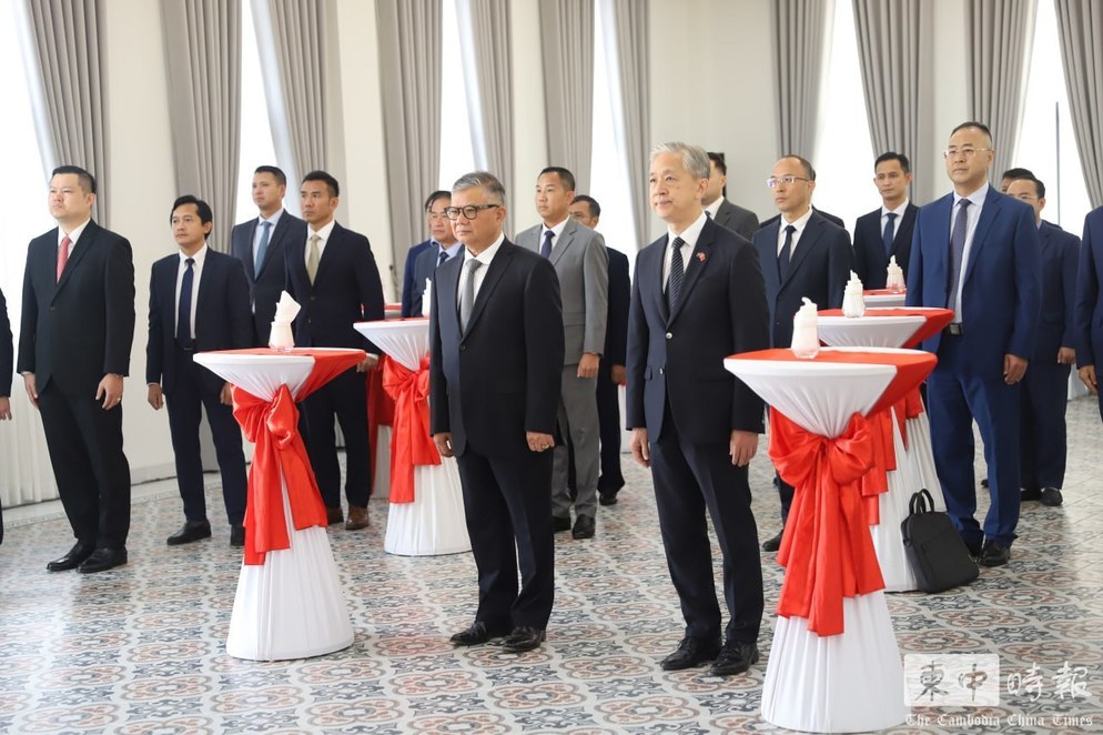 金边举行中国公安部向柬埔寨打击网络诈骗委员会秘书处援助警用物资交接仪式,蔡西纳烈国务部长与汪文斌大使共同出席。