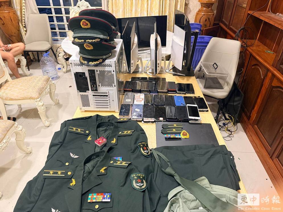 (金边讯)19名中国籍人员在金边一处住宅区从事电信诈骗活动,并伪装成“中国人民解放军”对中国境内目标实施诈骗。《柬中时报》获警方消息,金边警方昨日(3月17日)在炳发城住宅区展开突击行动,一举捣毁该网络诈骗窝点,现场拘捕嫌疑人19名。