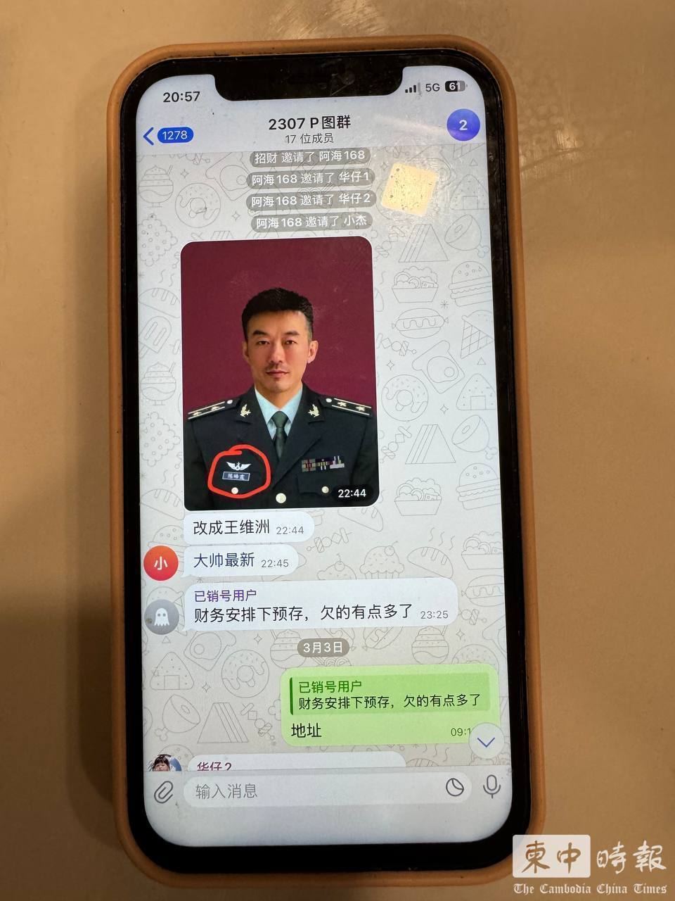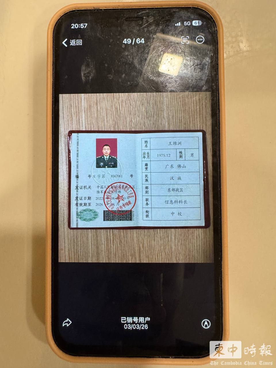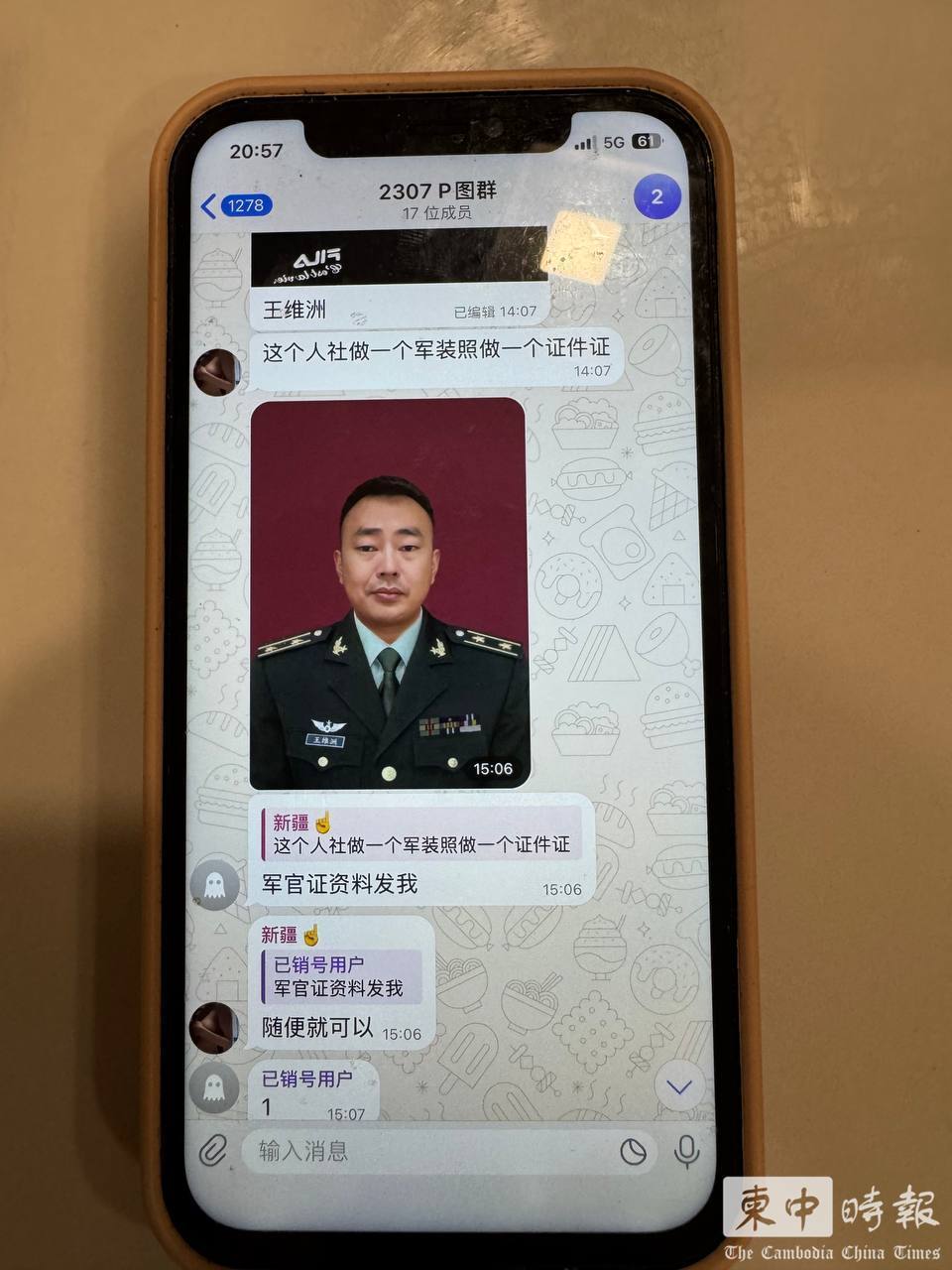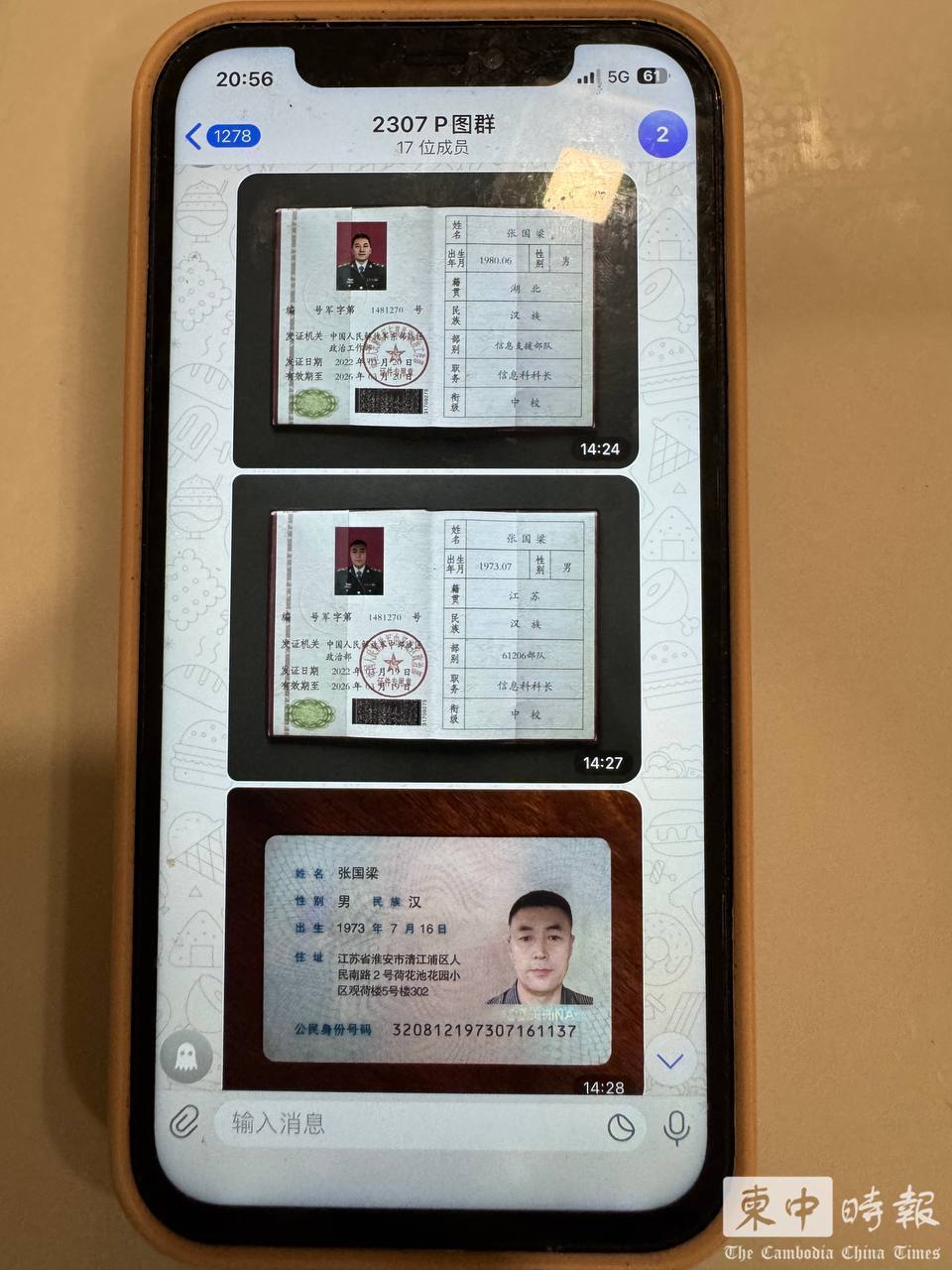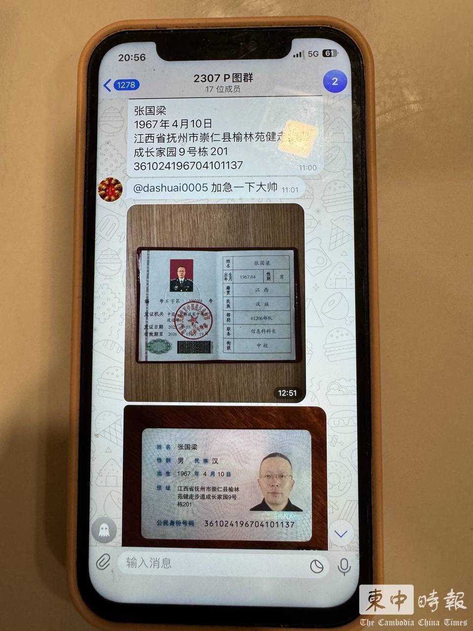 涉案群组内流传多张“军官证”“身份证”等伪造证件图片。(图:柬中时报)