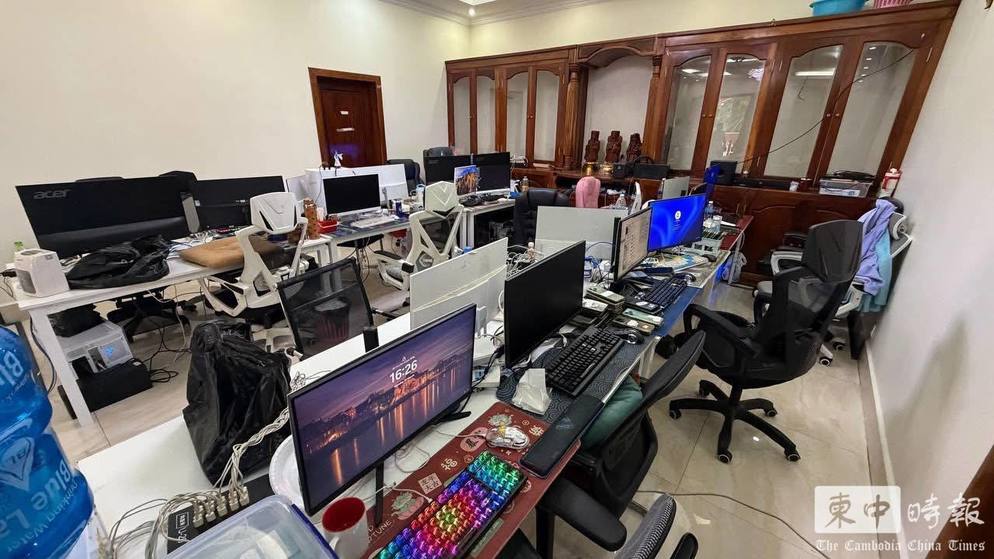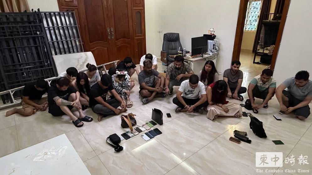 西港别墅暗藏电诈窝点,警方突查拘捕20人。(图:柬中时报)
