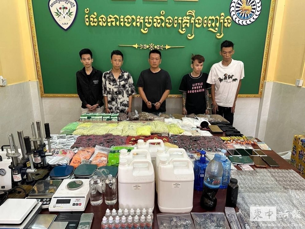 柴桢省警方行动中拘捕5名涉毒嫌疑人。(图:柬中时报)