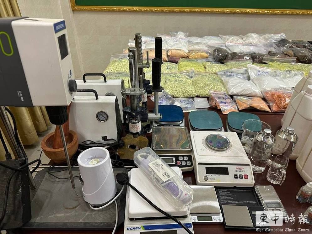 现场查获大量制毒设备及称量工具。(图:柬中时报)