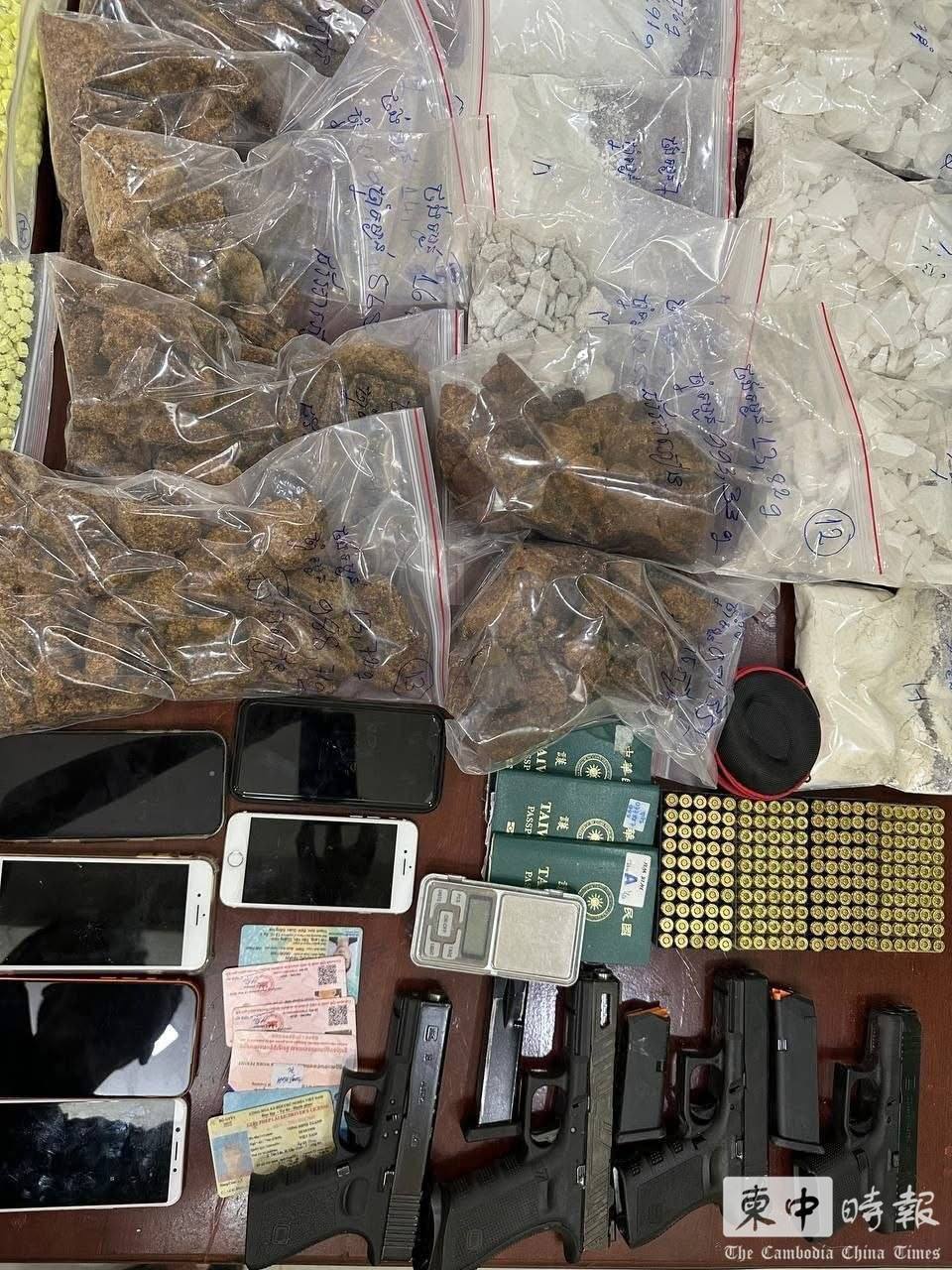 不同类型毒品及包装材料被缴获。(图:柬中时报)