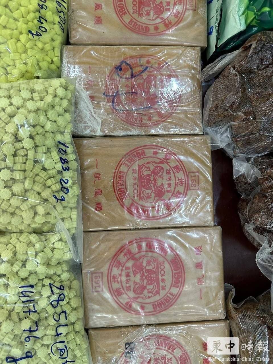 现场发现成批封装毒品砖块。(图:柬中时报)