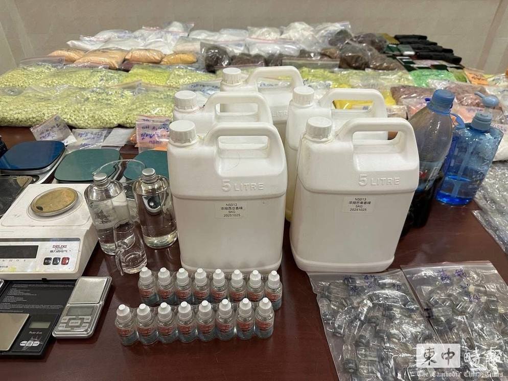 制毒原料及液体化学品一并被查获。(图:柬中时报)