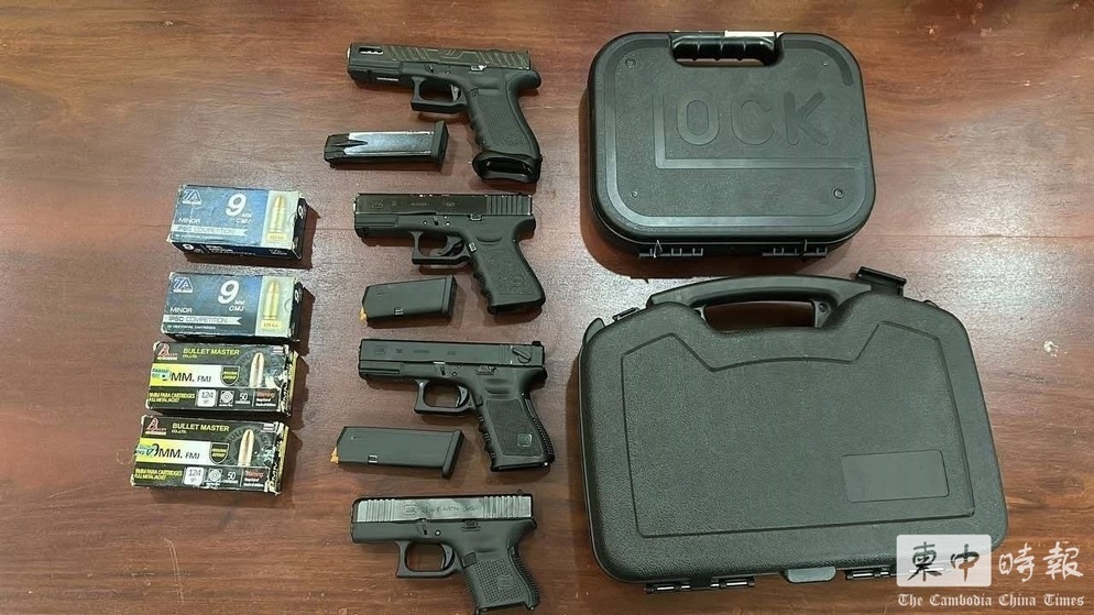 警方缴获手枪及弹药。(图:柬中时报)