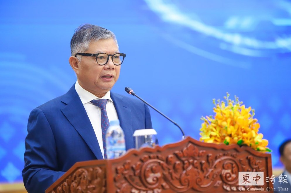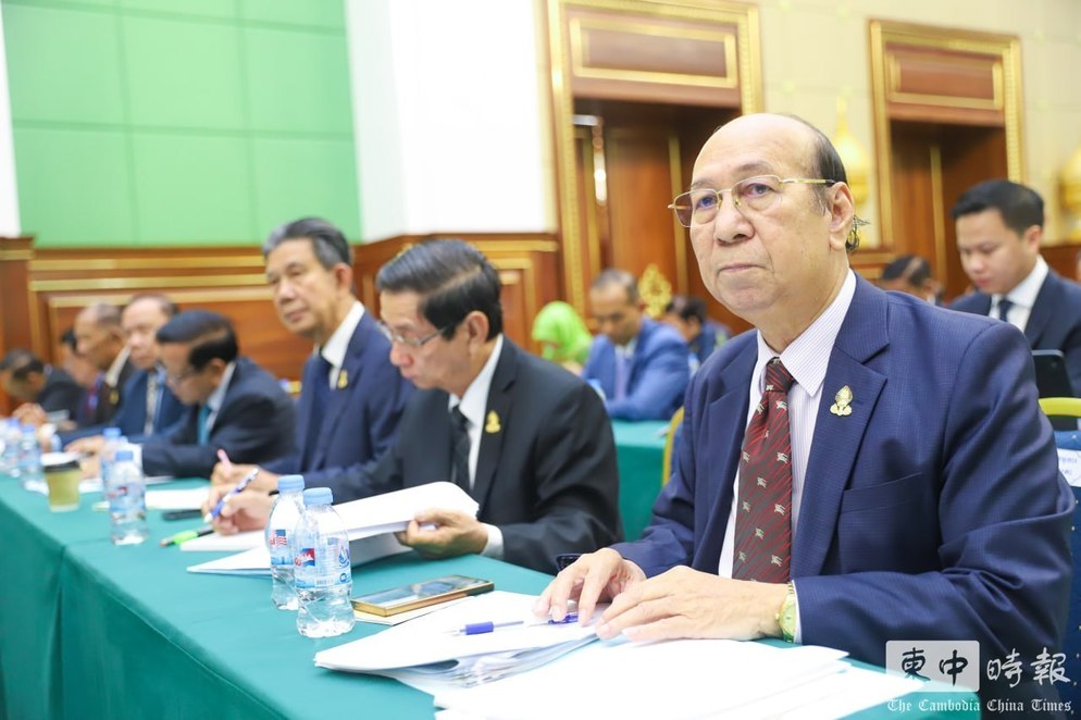 蔡西纳烈在参议院专题会议上发言,通报全国打击网络诈骗行动进展。(图:柬中时报)