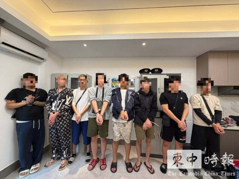 (金边讯)金边市执法部门今日(4月6日)展开执法行动,在森速区一处公寓内捣毁电信网络诈骗窝点,拘捕8名外籍嫌疑人,包括5名日本人、2名中国大陆及1名台湾人。