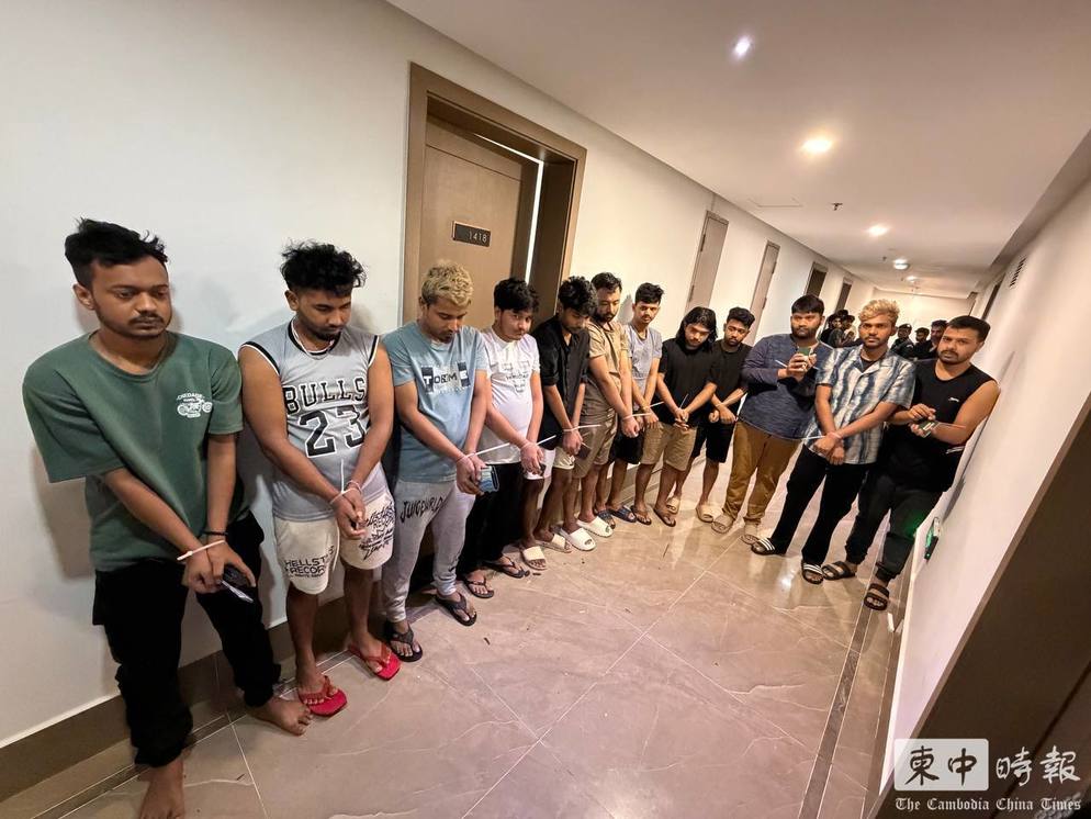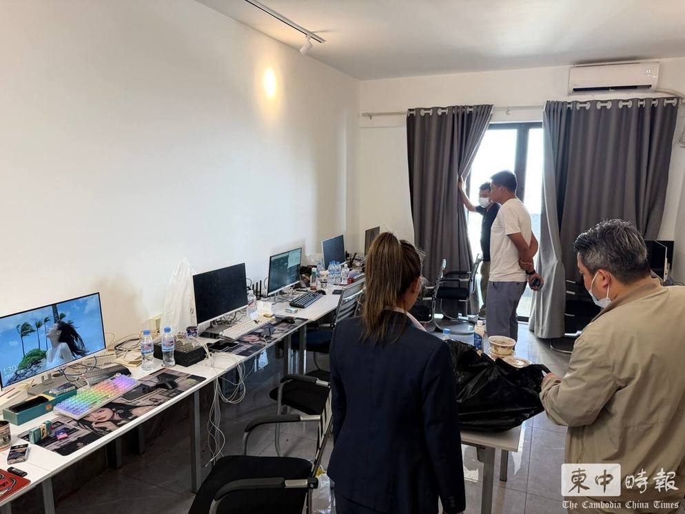 (金边讯)金边市执法部门昨日(4月6日)展开行动,在森速区一处公寓内捣毁大型电信网络诈骗窝点,拘捕外籍人员218人。