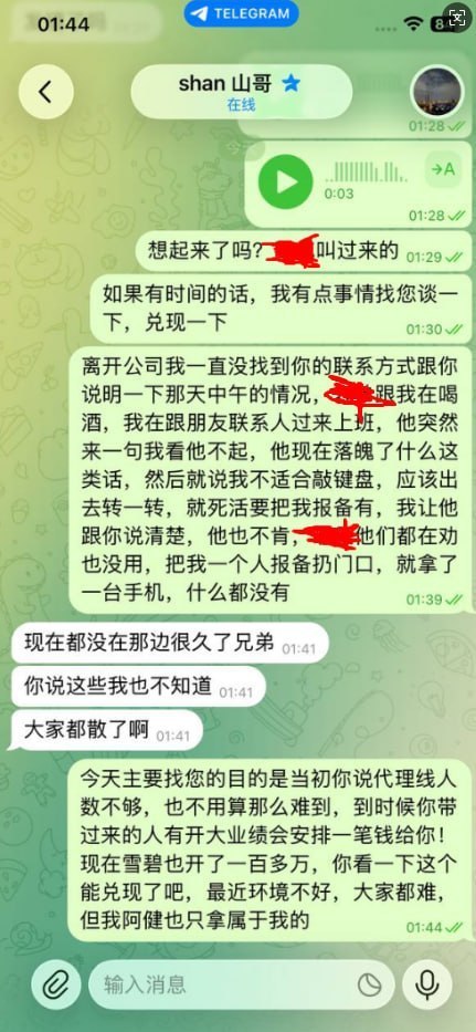 为什么人家没过来,这些事情我们就不提了。虽然就剩一个人在你公司,但前后陆陆续续也开了两百来万U的业绩,你总得把你当初承诺我的事情给兑现了吧?我找你应该没有胡搅蛮缠乱开口吧?