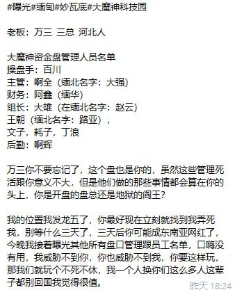妙瓦底大魔神资金盘核心管理人员名单