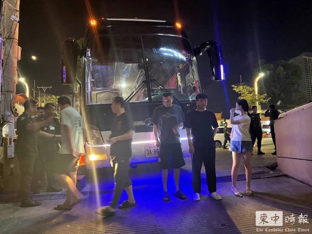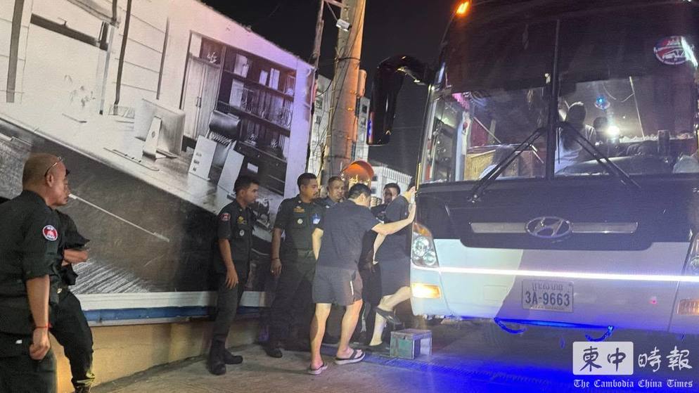 执法人员押送涉案人员离开现场。(图:柬中时报)