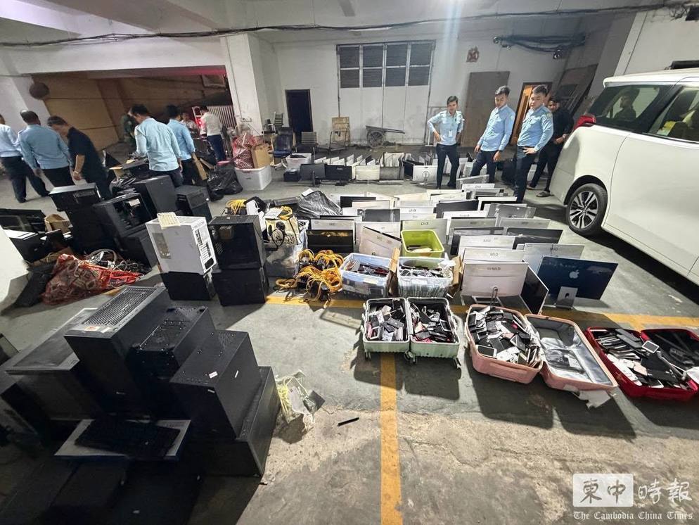 警方对位于西哈努克市第4分区第4村的涉案赌场实施突击检查,现场查获一批作案设备及相关证据,疑为实施诈骗活动所用。