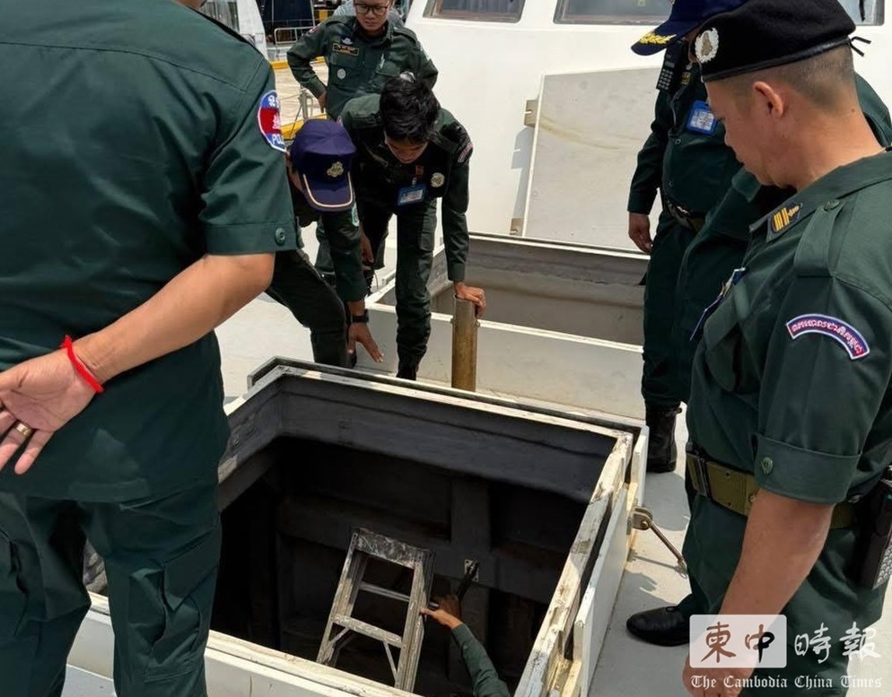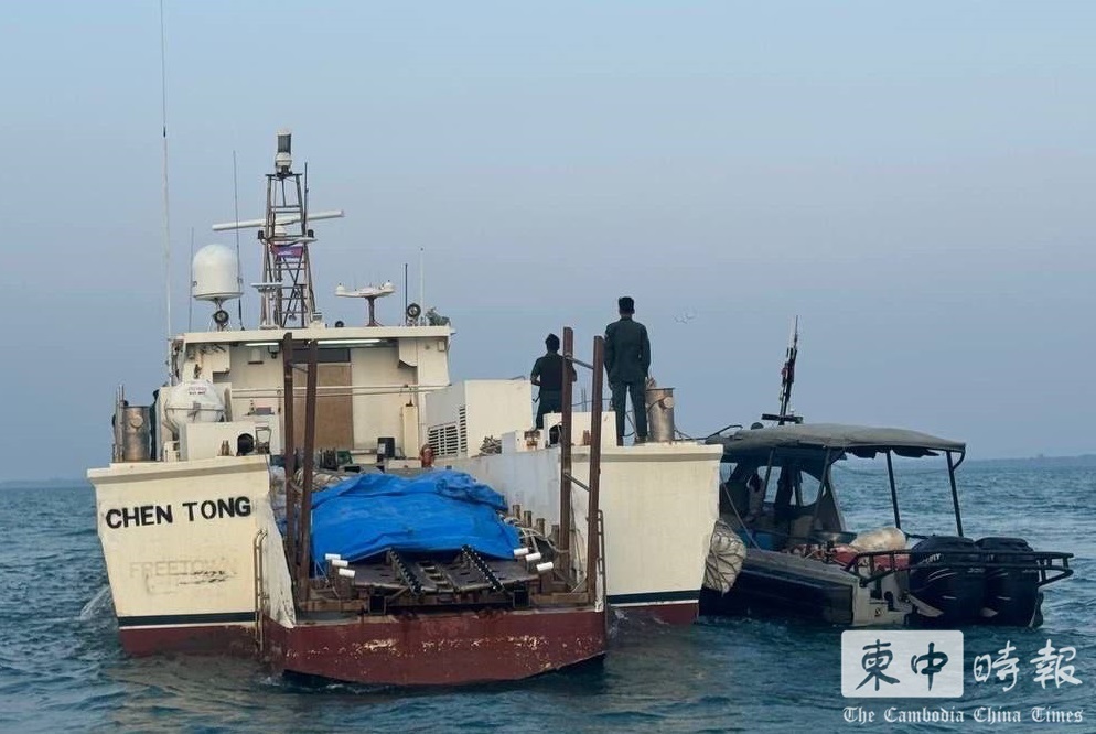 涉事船只在海上航行,被执法部门拦截检查。(图:柬中时报)