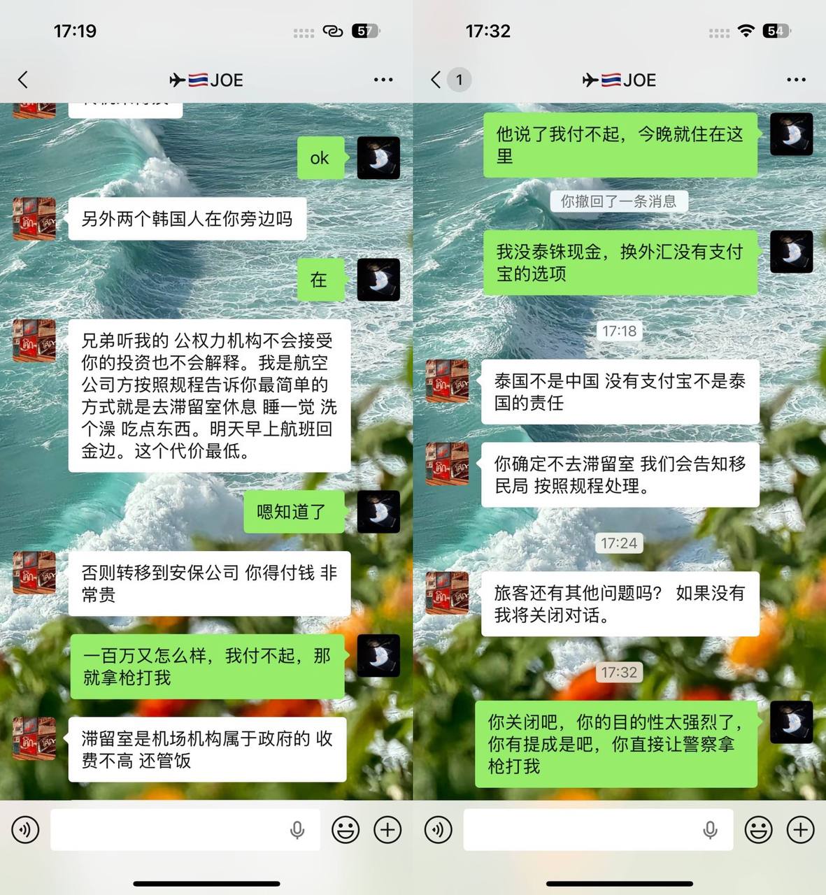 重点来了,这条曝光里说这是一条黑色产业链,这是完完全全的事实,如果只是单纯拒我就算了,到后面告知我实情的时候,就让我签遣返的文件,然后跟我说,我需要付1070泰铢的滞留点费用,然后我说我没有现金,他就让我去加一个台湾人(马来西亚人)的微信!
