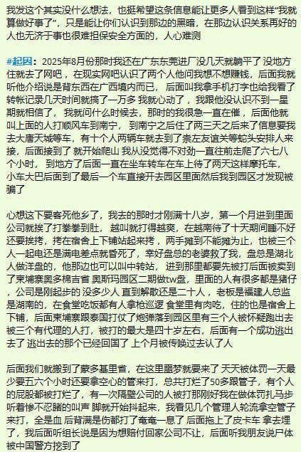 我想说的是不要为了一时的欲望而放弃精彩的人生,有被十几年的朋友骗了过去,也有被亲人骗的,任何人都不要轻易相信,刚好碰上了打击电诈,也幸好我有运气能捡条命回来
