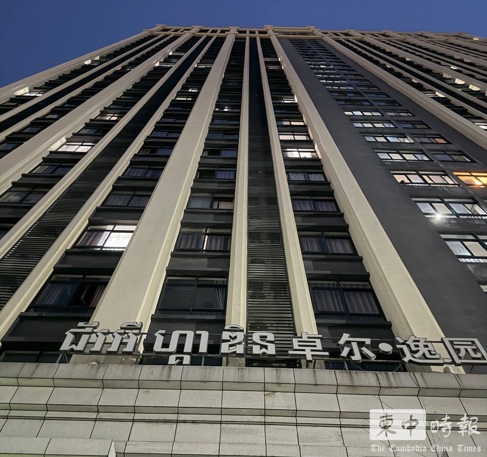 金边“卓尔逸园”公寓外观。警方突查该楼,查获涉案外籍人员55人并缴获约10公斤毒品。(图:柬中时报)