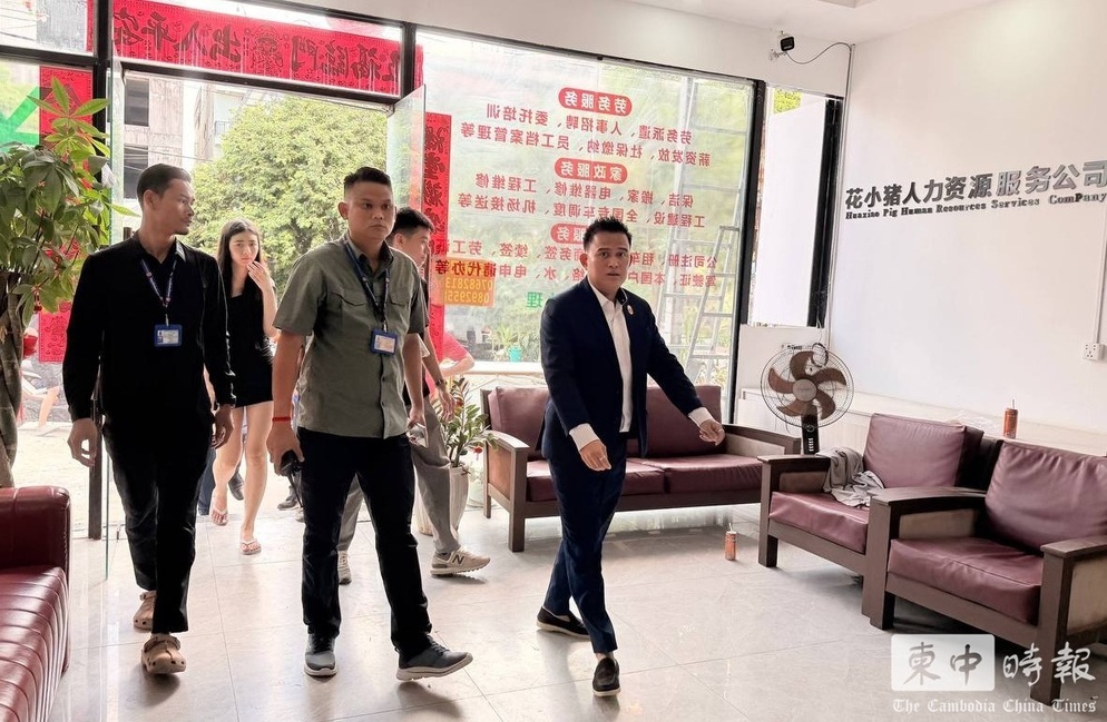 执法人员进入涉案场所展开搜查行动。(图:柬中时报)